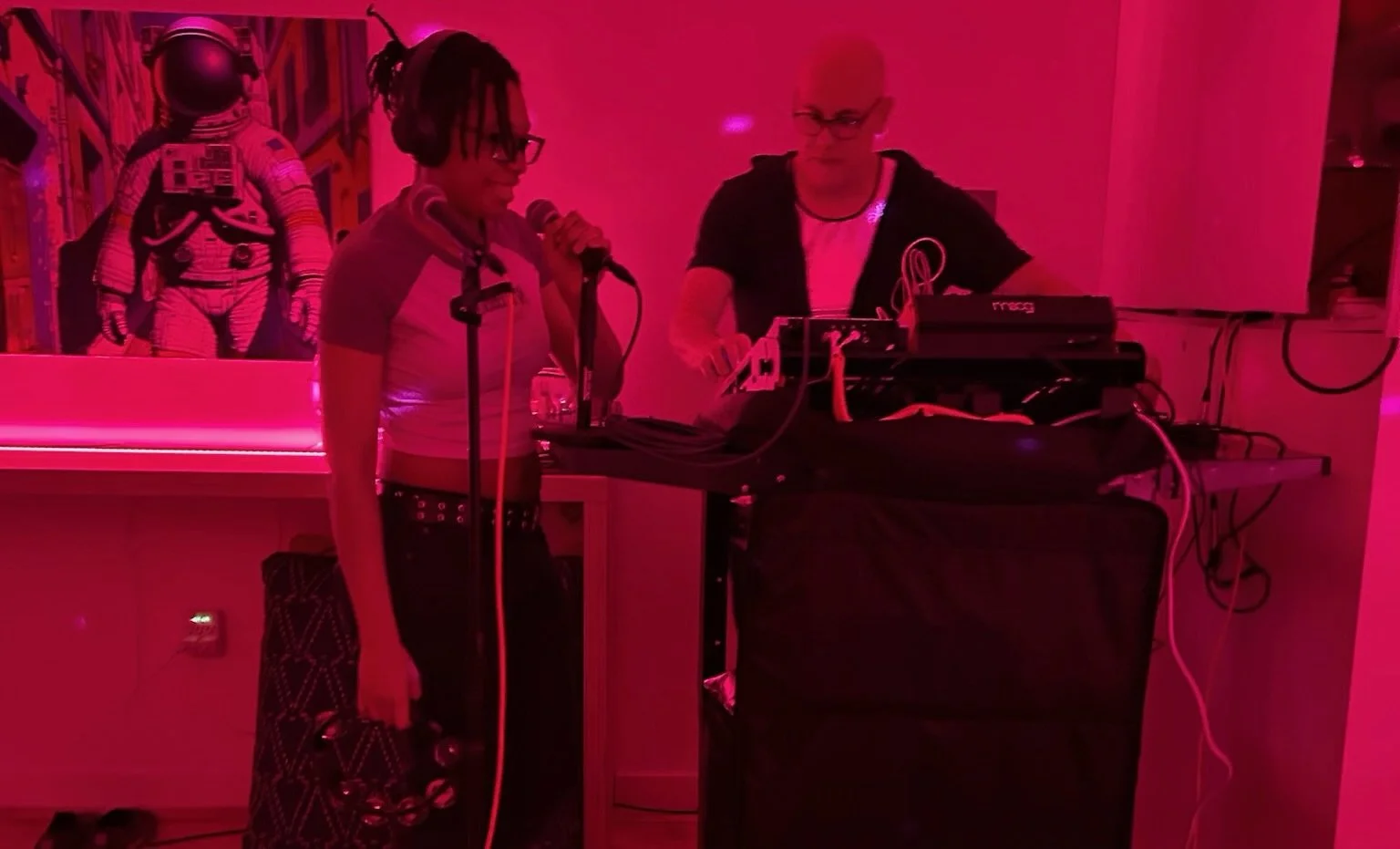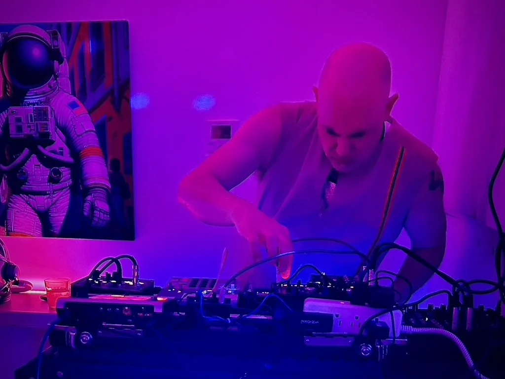 A playful, welcoming, shoes-off dance party where you can join in the rhythm with percussion instruments (provided - or bring your own), or step up to the mic and improvise your own tiny techno vocals. For two hours, immerse yourself in infectious beats created live by Bearded Twin on analog synthesizers, drum machines, and both sampled and live vocals, set in an intimate, cozy space with club-quality sound. Come dance off your week, connect, let go, wander through surreal art displays, mingle at the bar, explore the tiny shop for creative finds, or unwind in the chill audiovisual installation Vibe Check.